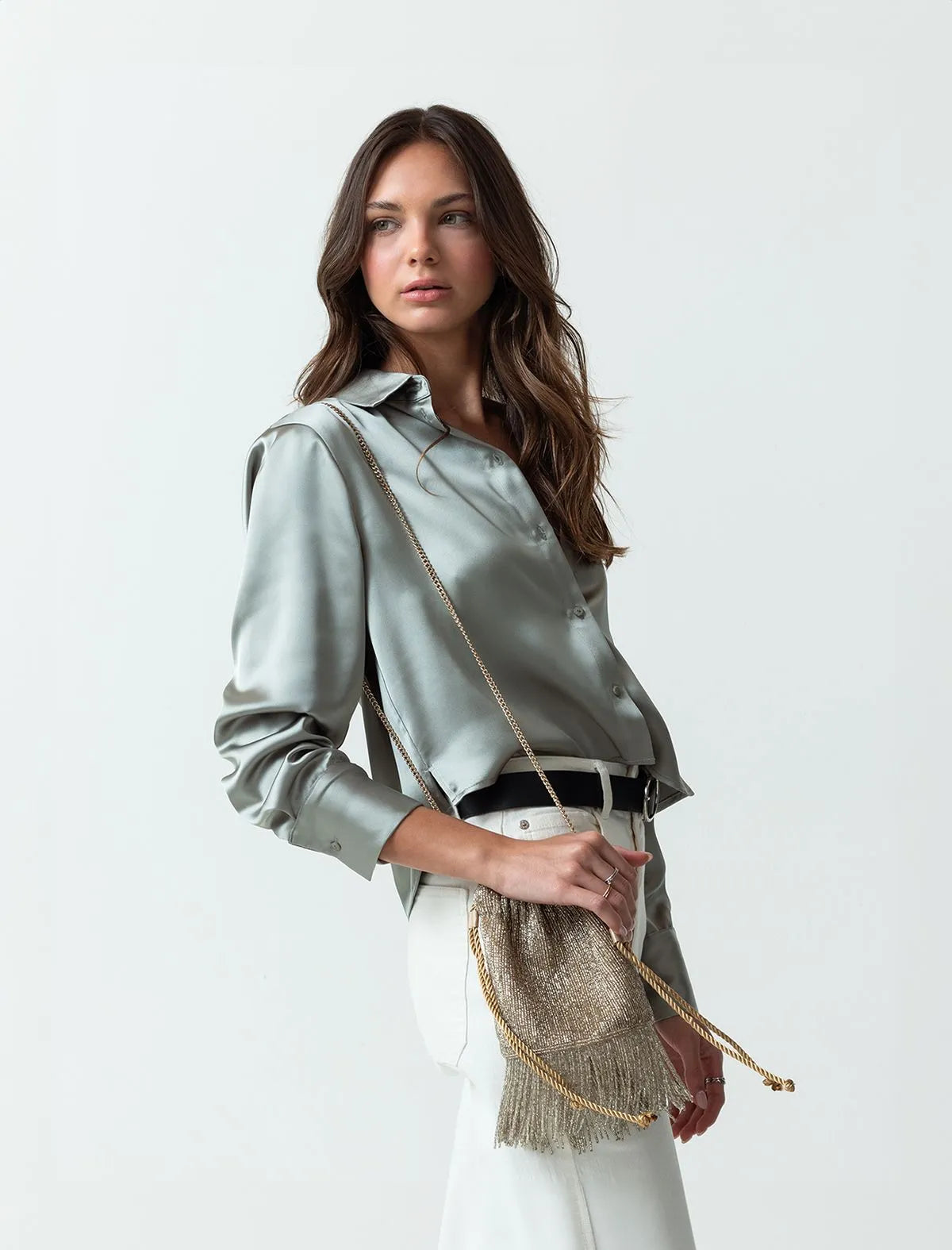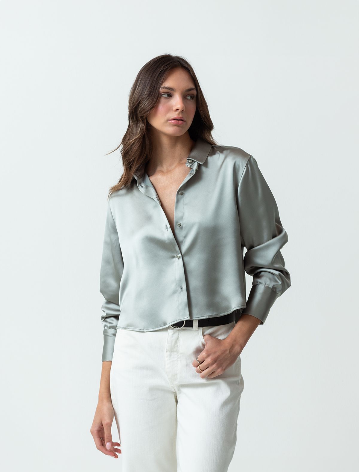 Satin V-neck Shirt